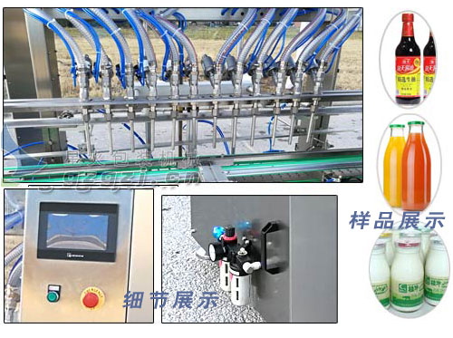 4、十二頭直流式液體灌裝機(jī)-羊奶玻璃瓶灌裝機(jī)具有無(wú)瓶不灌裝、自動(dòng)進(jìn)瓶出瓶、自動(dòng)定位灌裝、自動(dòng)控制液位等功能,自動(dòng)化程度高;灌裝嘴設(shè)計(jì)科學(xué)合理,配防滴漏裝置,確保灌裝不滴漏,保證物料瓶及設(shè)備的干凈衛(wèi)生。